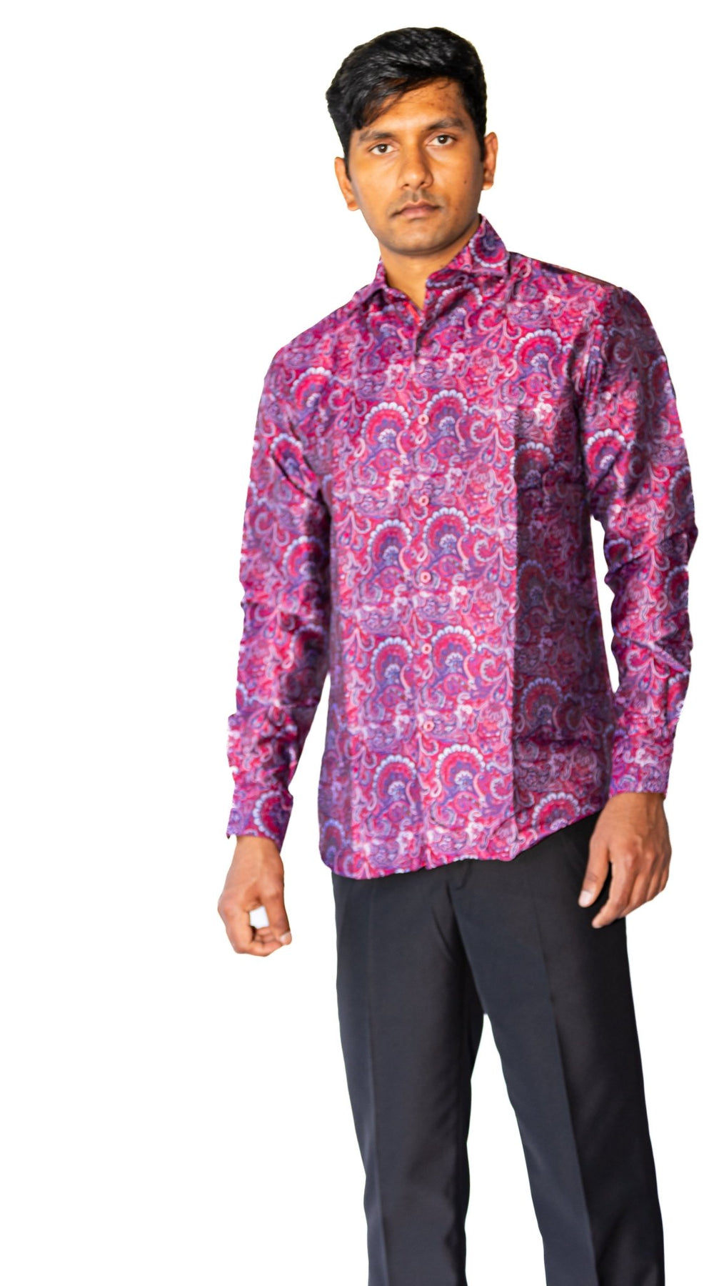 Maroon Blue Paisley Silk Men's Shirt- CY-0042