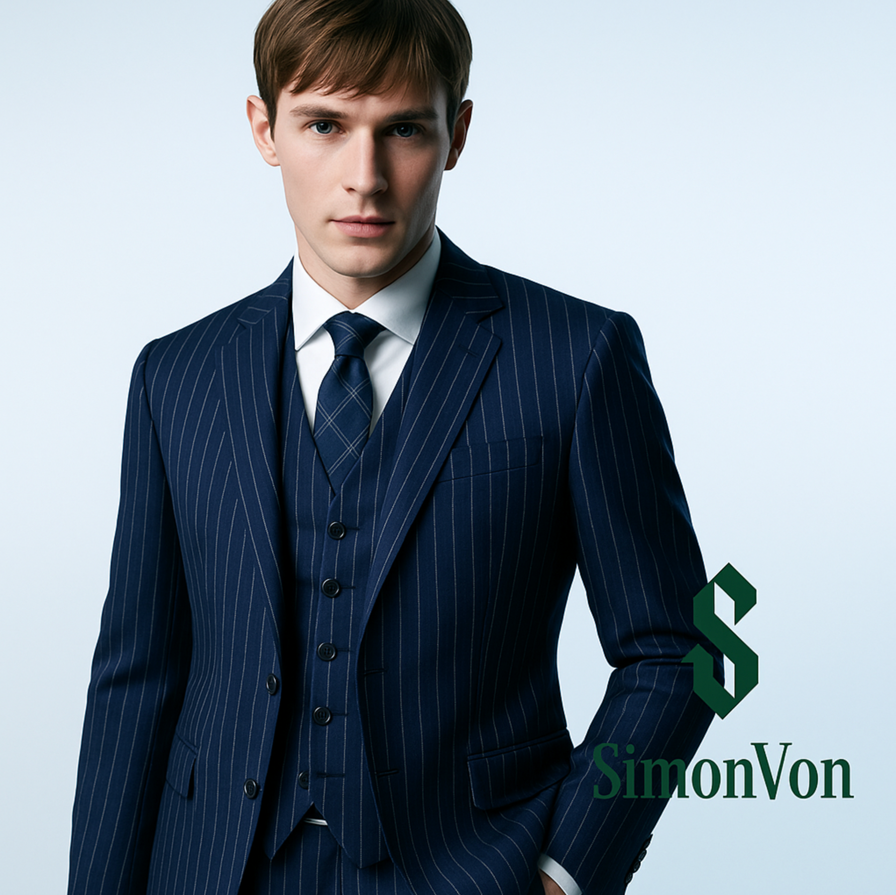 One Button Men's Striped Three-piece Suit, Jacket + Vest + Pants, Wedding Party Formal Wear, Plaid Suit-UY308017 - SimonVon Shop