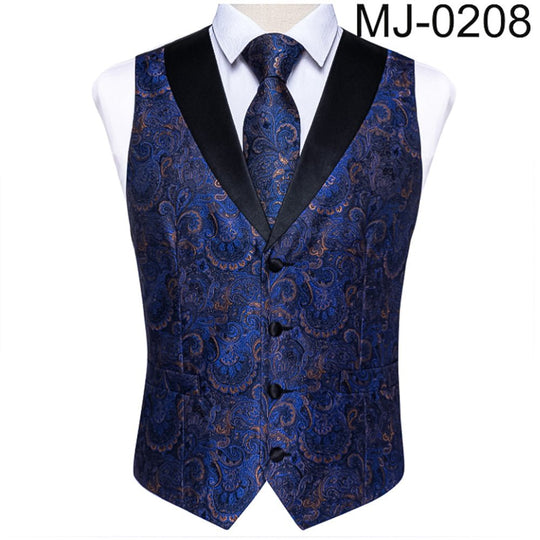 Each waistcoat vest is crafted with precision and attention to detail to ensure a perfect fit. The single-breasted design and adjustable back strap allow you to customize the fit to your liking. Whether you're looking for a statement piece for a formal occasion or a polished addition to your everyday wardrobe, this Blue and Gold Floral Silk Single Waistcoat Vest is a must-have.