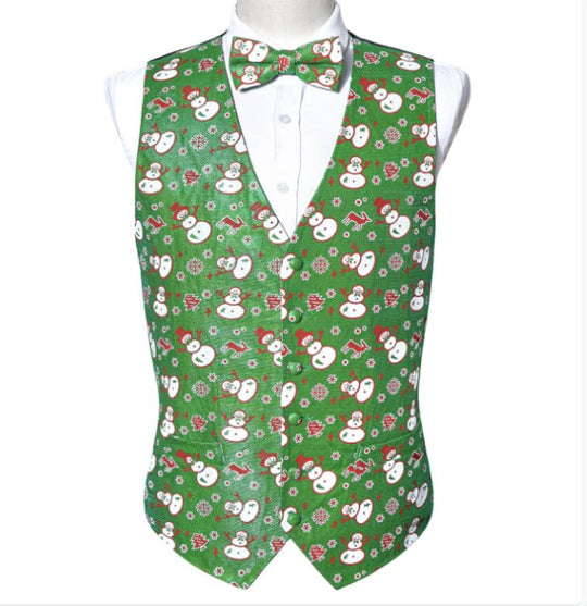 GREEN CHRISTMAS SILK WAISTCOAT VEST BOWTIE VEST SUIT SET-MJ-2055 - SimonVon Shop