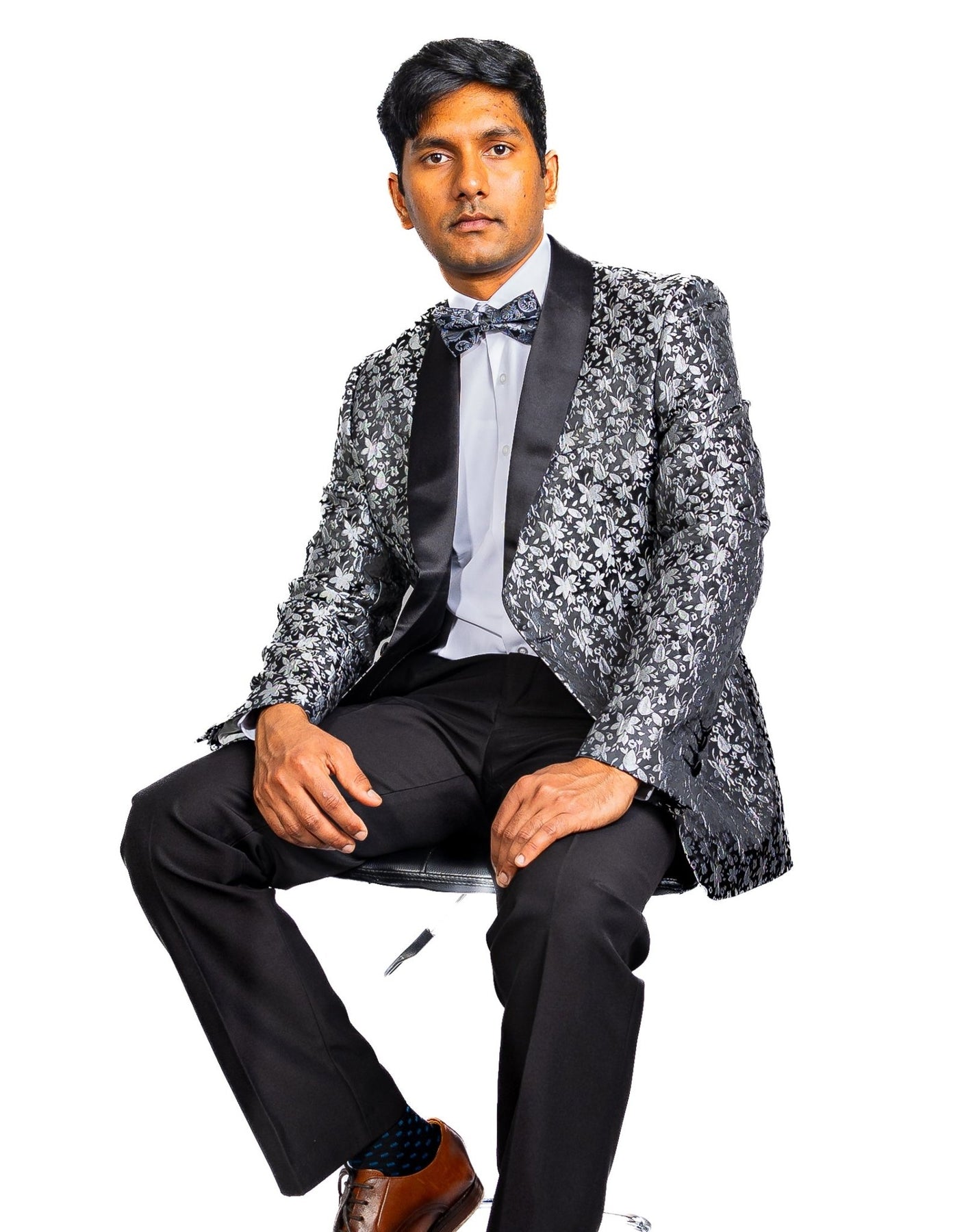 • Men's paisley dinner & wedding tuxedo blazer, with long sleeve, two front pockets, and one chest pocket.