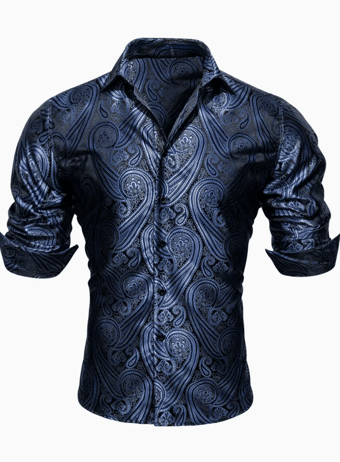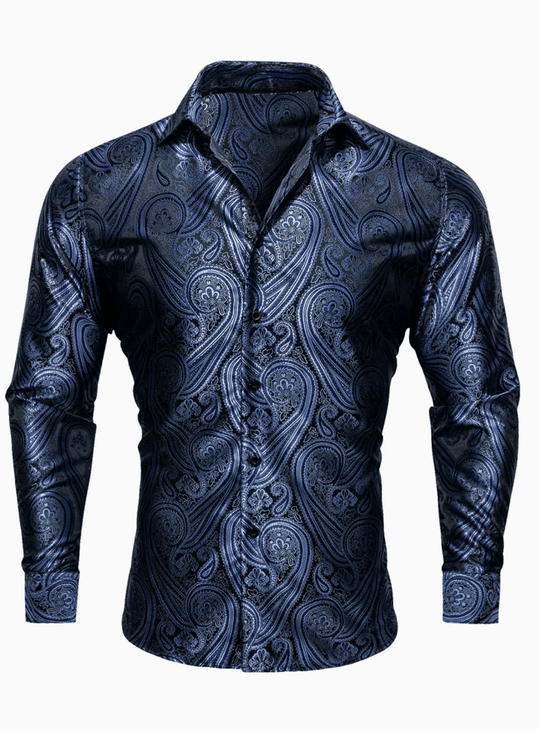 Midnight Blue Paisley Windsor Collar Shirt-CY-0402