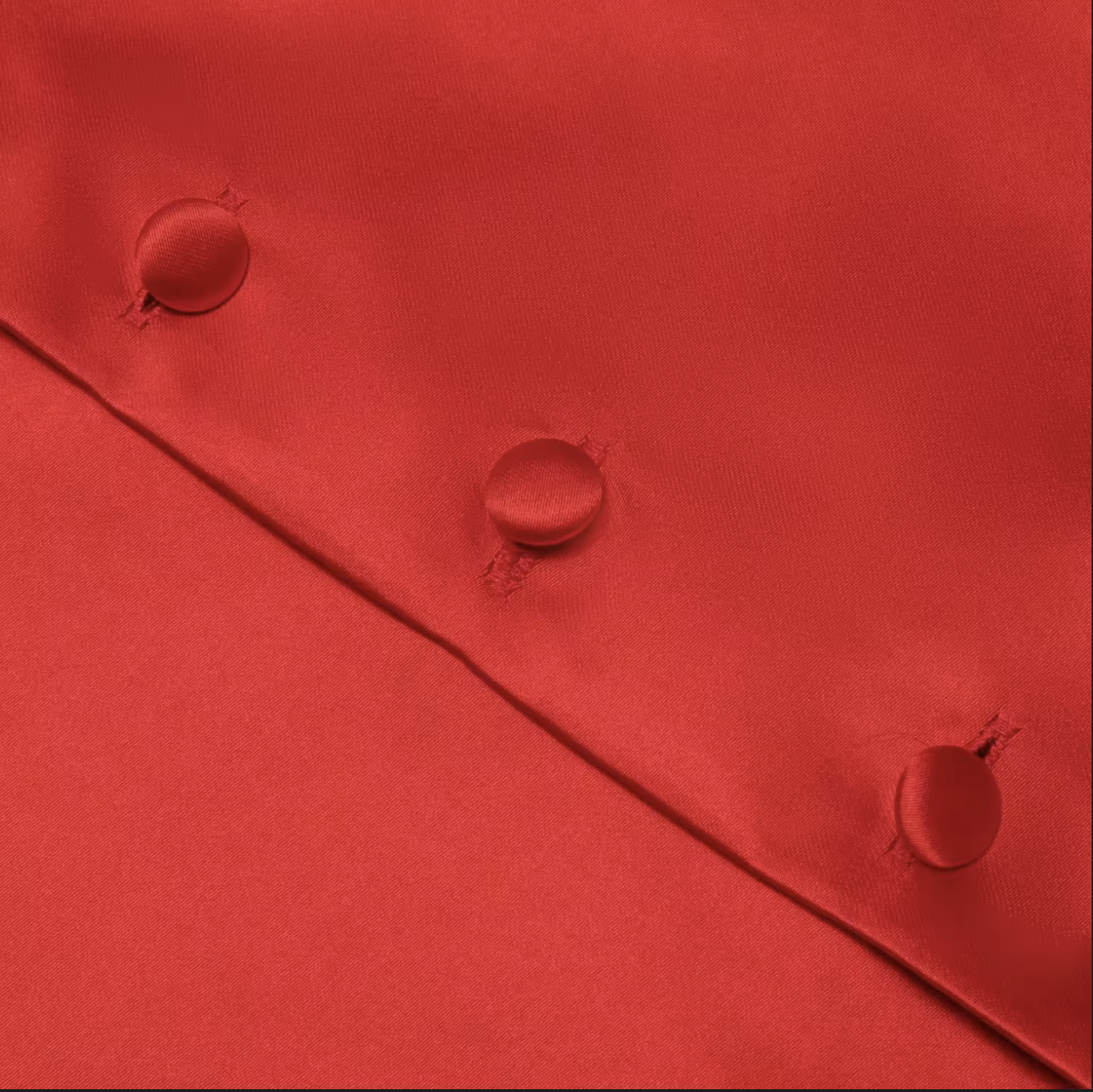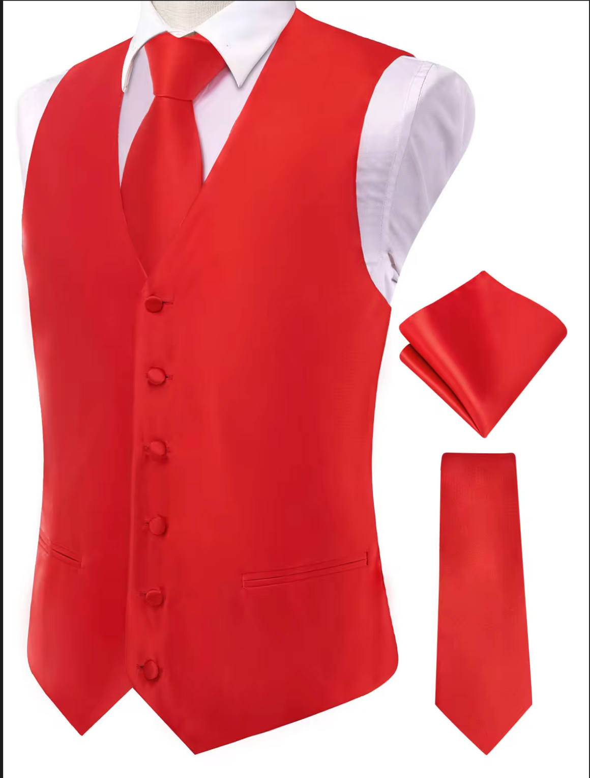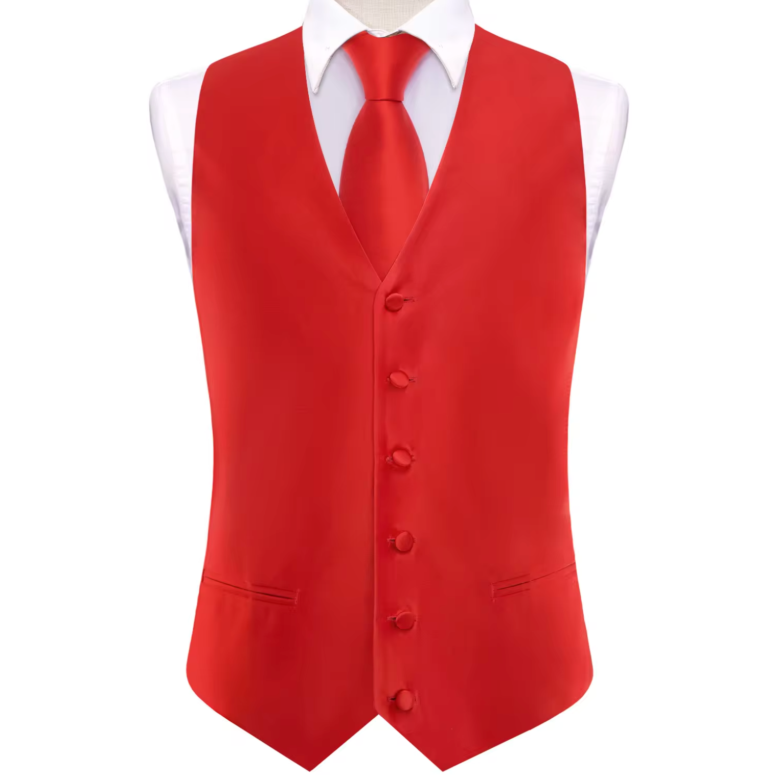Red Solid Silk Waistcoat vest Tie Handkerchief Cufflink Set - MJ3514